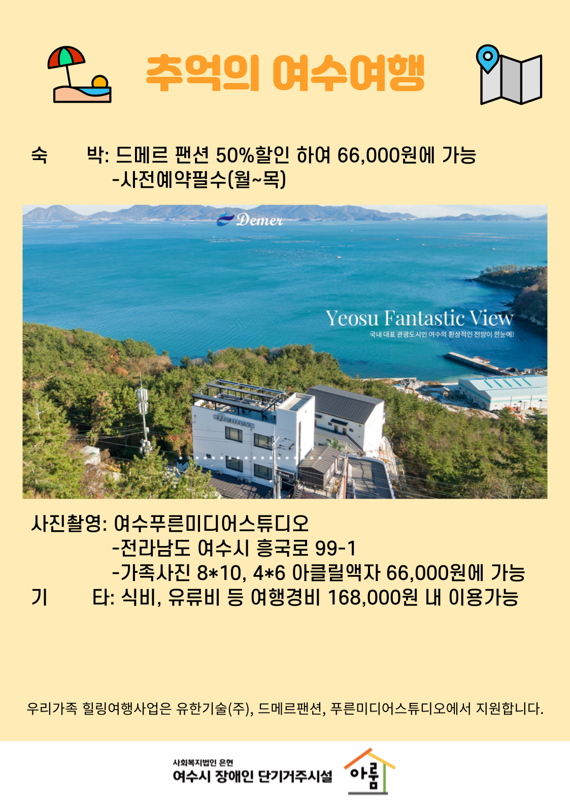 우리가족 힐링여행사업은 유한기술(주), 드메르팬션, 푸른미디어스튜디오에서 지원합니다.
