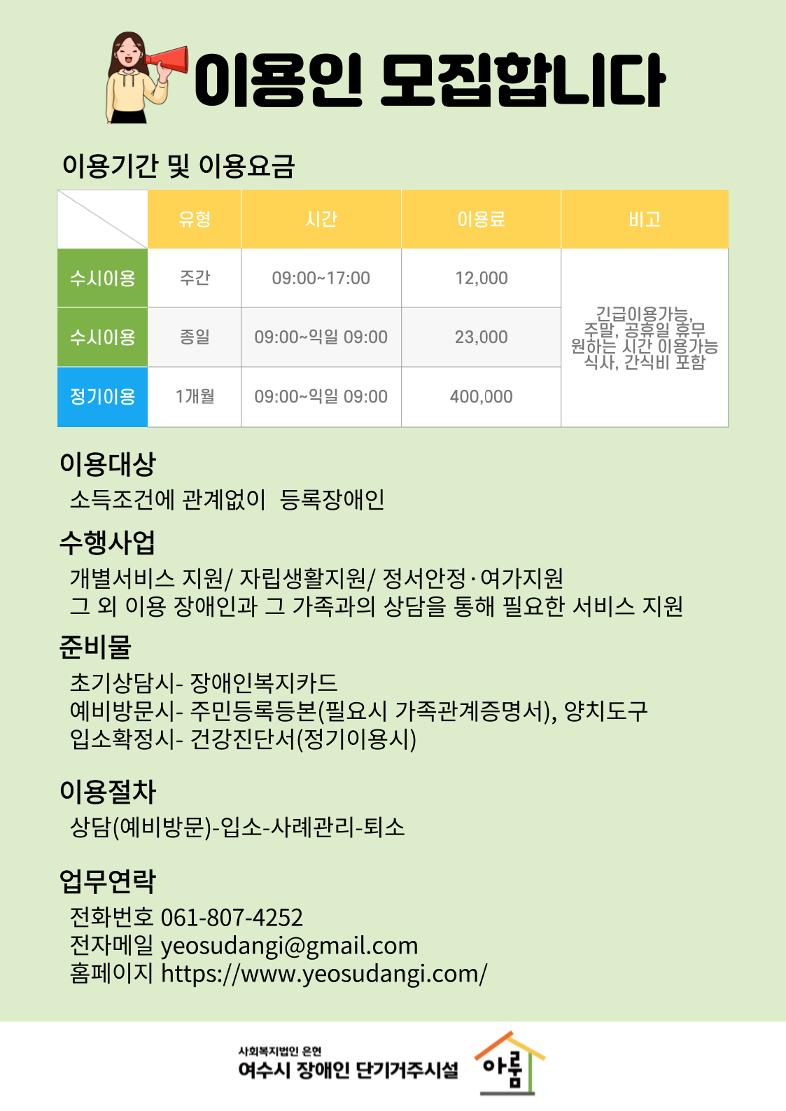 | 단기간 보호가 필요한 장애인을 위한 여수시장애인단기거주시설 (0) | 2024.05.07 |