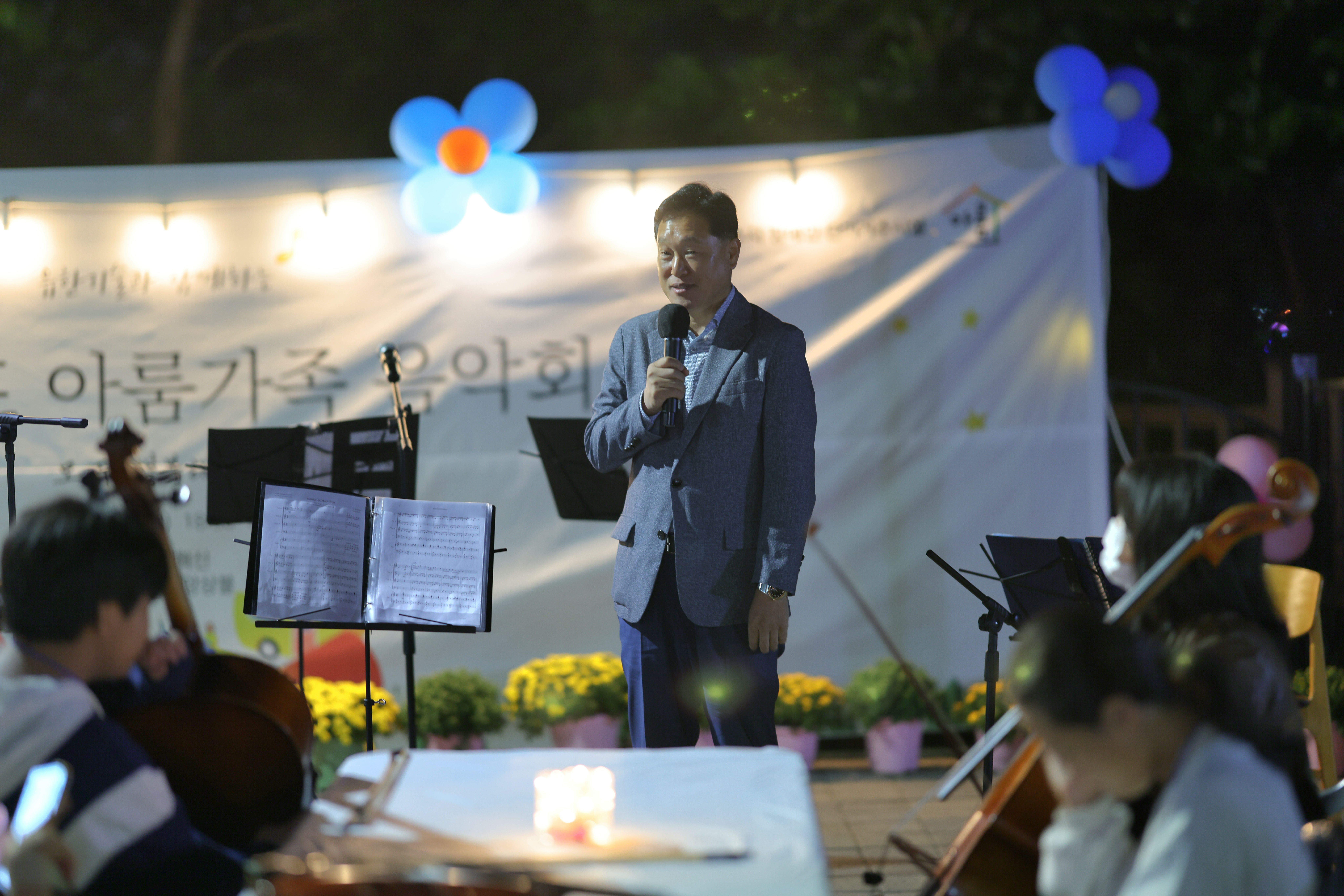 여수시장애인단기거주시설(원장 정윤정)은 지난 11일 시설 앞마당에서 입소자 및 보호자, 후원자, 자원봉사자를 초대하여 '유한기술과 함께하는 힐링캠프 아룸가족 음악회'를 개최했습니다. 초대가수 서혁신과, 열린패밀리앙상블의 클래식 공연으로 깊어져가는 가을을 느끼고, 장애인을 돌보는 보호자들에게 힐링의 시간이 되었습니다.