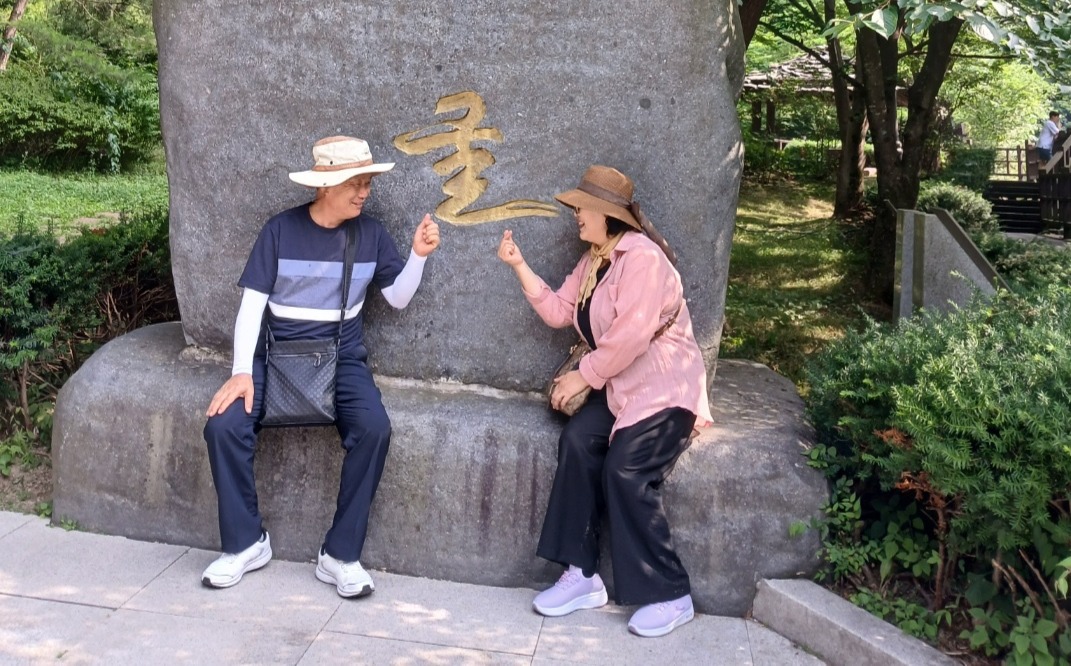 여수시장애인단기거주시설(원장 정윤정)에서 지원한 힐링여행으로 두 부부가 대금굴에서 사진을 찍고 있다.