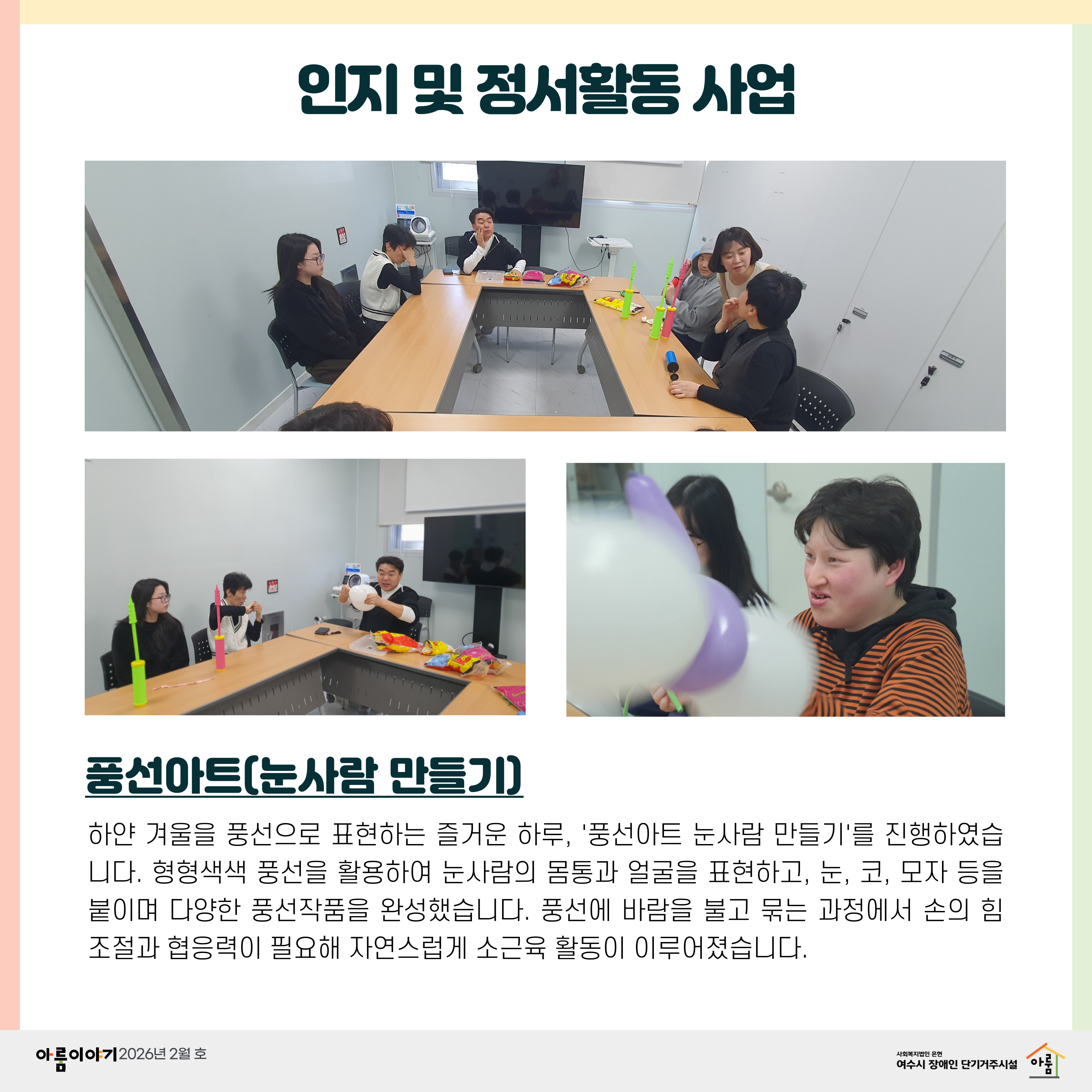 여수시장애인단기거주시설의 살아가는 이야기를 담은 소식을 들고 왔습니다. 향긋한 봄꽃 소식과 함께 기분 좋은 3월 보내세요. 늘 행복하고 즐거운 일만 가득하시길 응원합니다.