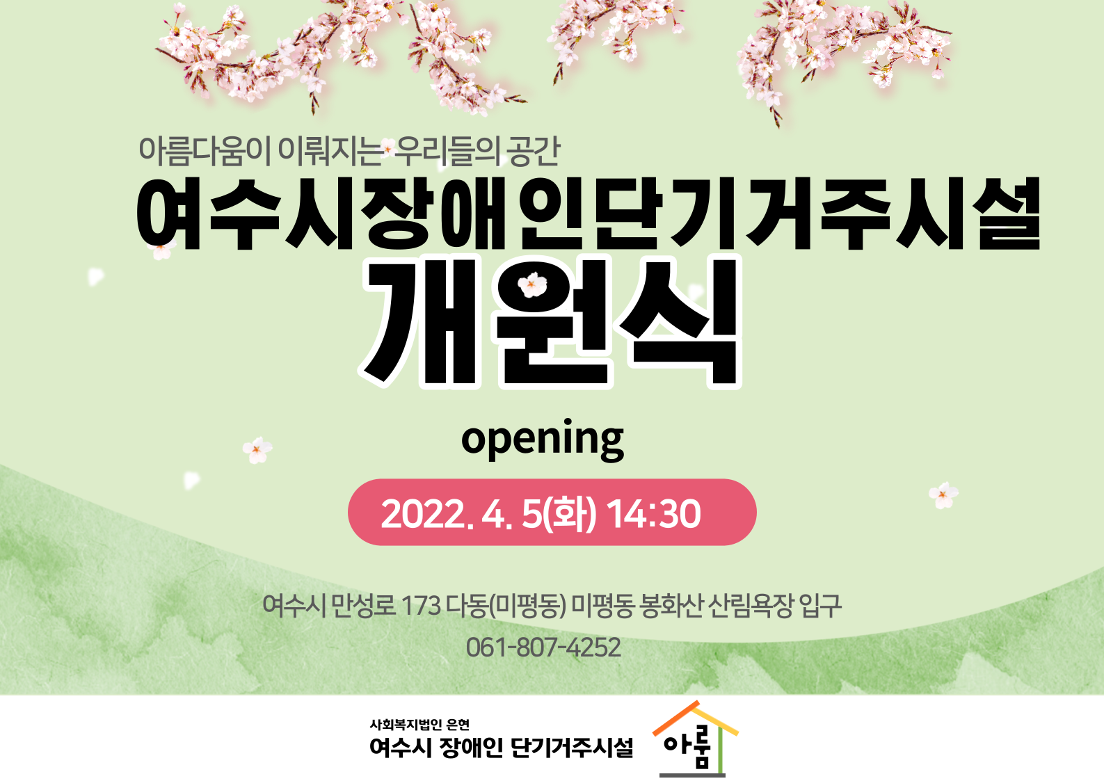 여수시장애인단기거주시설 '아룸' 개원식 안내