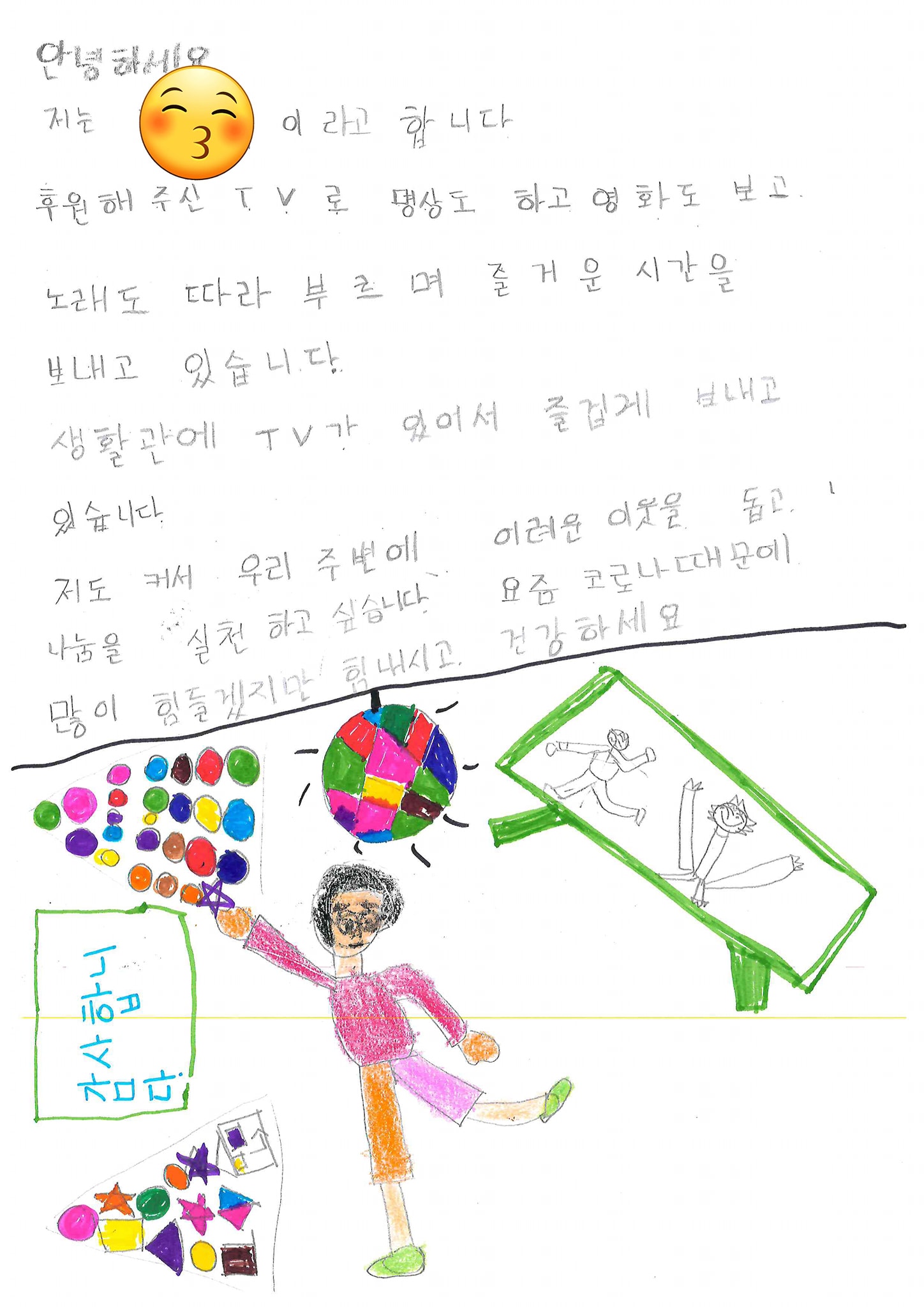 다양한 프로그램들도 구성해야 하고 입소자와 함께 보내는 시간도 많습니다. 그런데 KT스카이라이프에서 ’사랑의 안테나‘를 보내주셨습니다. 보고싶은 드라마도 보고 아침에 일어나면 요가도 따라해보고, 다 같이 체조도 하며 하루하루 즐거운 일상을 보내게 되어 감사합니다.