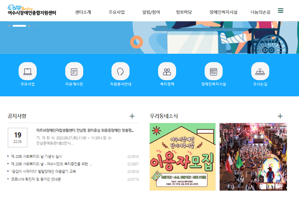 여수시 장애인시설의 다양한 정보를 안내하고 있습니다