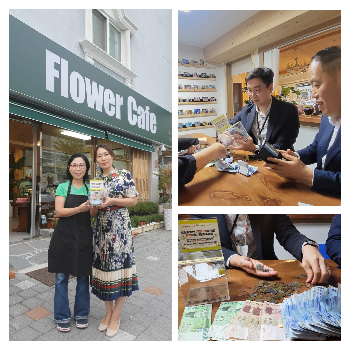 설치된 모금함 중 플라워카페(미평동) 모금함이 첫 개봉되었습니다.